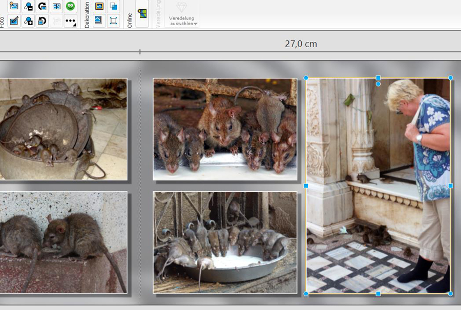 Ich hatte eine Seite im fertigen Buch, da war der Button aktiviert. Sah ganz anders aus als in der Vorschau. Mitarbeiter von Pixum haben mir dann erklärt, warum das so ist. Bis dahin war mit diese Funktion gar nicht bewusst. Daraufhin habe ich dann alle Bilder überprüft und dabei ist mir dann aufgefallen, dass bei manchen Bilder der Button nicht aktiv ist. Jetzt weiß ich warum. Ein großer Dank wieder dem Forum. Das ist in Indien im Deshnok_KARNI MATA TEMPEL in der Nähe von Bikaner. Im Tempel leben Tausende Ratten, die von den Besuchern mit mitgebrachten Speisen und Getränken umsorgt werden. Wie in hinduistischen Tempeln üblich, müssen die Besucher vor dem Betreten ihre Schuhe ausziehen. Die Touristen dürfen jedoch ihre Strümpfe anbehalten. Diese haben wir nach dem Besuch dann direkt in einem Mülleimer entsorgt. Die Gläubigen essen von den Speisen und trinken Wasser oder Milch aus den Schalen, von denen zuvor die Ratten gegessen oder getrunken haben. Läuft eine Ratte über die Füße, bedeutet das Glück. Ein Erlebnis der besonderen Art, ist aber jedem, der Indien in dieser Gegend besucht, zu empfehlen. LG Anna Re: Was würdet Ihr ändernHallo Silber-Distel,