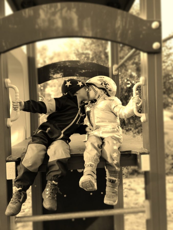 ich brauche mal wieder eure Hilfe... das 4. Jahrbuch für mein Enkelchen ist in Arbeit. Bei einer Seite weiß ich nicht so recht weiter. Die Bilder habe ich umgewandelt in Sepia, sie stehen mir aber auch in voller Buntheit zur Verfügung. Es ist so ein zhauberhafter Moment gewesen, dass diese Bilder eine Doppelseite bekommen. Seine kleine Freundin ist schon seit seiner Geburt immer an seiner Seite - sogar schon in den Kinderwagen sind sie gemeinsam ausgefahren worden von ihren Mamas... Hier nun meine Gestaltung...