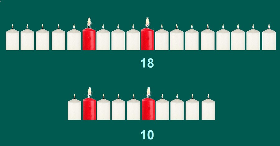 18 Kerzen Interessant wären noch Varianten, wenn einige Kerzen halb abgebrannt sind, nach dem Motto 6 halbe Kerzen = 3 ganze Kerzen Liebe Grüße