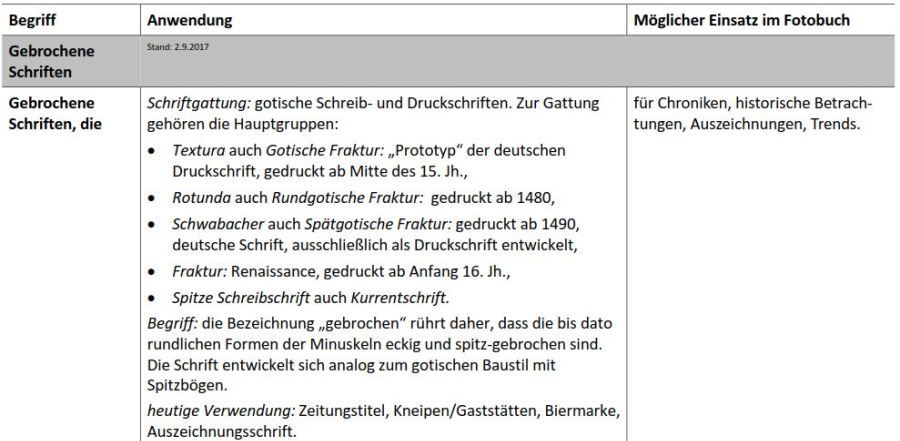 Hier ein Ausschnitt zum Gucken: https://www.dropbox.com/s/nhahf5pkqctlq ... 1.pdf?dl=0 Ich wäre jetzt fertig. Ich habe aber noch vier Doppelseiten frei. Habt Ihr Anregungen, was ich noch erarbeiten sollte? Wenn Ihr Ideen habt, was in dieses Anwendungsbüchlein gehören könnte, wenn Ihr Fehler findet, Fragen habt oder sonstige Anregungen, bitte gerne im Beitrag Fragen zum typografischen Glossar: https://www.cewe-community.com/forum/vi ... 93#p127793 Lieber Gruß, pitty