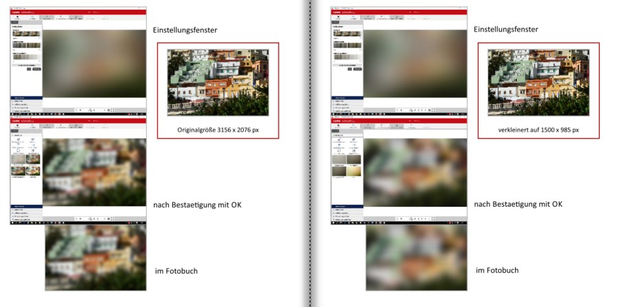 Im Einstellungsfenster sehen beide Bearbeitungen gleich aus. Sobald man OK gedrückt hat, sieht man den Unterschied. Das kleinere Foto ist schon deutlich stärker weichgezeichnet. liebe Grüße