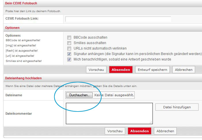 zum Hochladen Deiner Datei musst Du folgende Schritte ausführen: 1.) Unten in "Dateianhang hochladen" auf "Durchsuchen" klicken. PS Ich war etwas spät, dafür ganz ausführlich. Vielleicht hilft es, deshalb lasse ich es stehen. Liebe Grüße