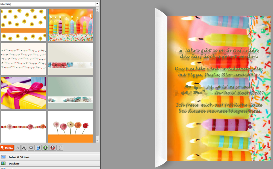 ich habe es mir natürlich auch nicht nehmen lassen, selbst zu versuchen eine Klappkarte Klassic im Hochformat zu gestalten. Tatsächlich benötigt man bei dieser Gestaltung etwas mehr Zeit. Besonders schade finde ich jedoch, dass nicht alle Hintergründe verwendet werden können. Ich habe dieses Thema meinen Kollegen beschrieben. Ob es zukünftig eine Besserung geben wird, werden weitere Gespräche noch zeigen müssen. Ich werde Sie jedoch informieren, sobald ich Neues weiß. Liebe Grüße