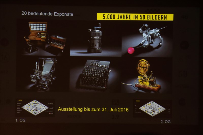Die Vernissage war recht gut besucht, ich schätze mal, so etwa 200 Gäste waren da. Der Fotograf Jan Braun gab Infos über den Ablauf des Projektes, dass über den Zeitraum Juni 2014 bis April 2016 lief. Der Aufwand, der für die Bilder getrieben wurde, ist schon staunenswert: Pro Objekt wurden 200 bis 300 Einzelaufnahmen gemacht, von denen 20-30 für die endgültige Bearbeitung mittels Photoshop ausgewählt wurden, wobei die Fertigstellung eines Bildes aus den 30 Einzelaufnahmen bis zu 3 Wochen in Anspruch nehmen konnte. Danach wurden die Fotos in einen Bildband umgesetzt, was auch einige Zeit beanspruchte. Die Druckabnahme der gedruckten Bögen war am 07.04.16 und dauerte 11 Stunden. Entsprechend hochwertig ist auch das Ergebnis https://www.google.com/culturalinstitut ... tion=0%2C0 Re: Fotoausstellung "Die Evolution der Informationstechnik"Hallo icke46,