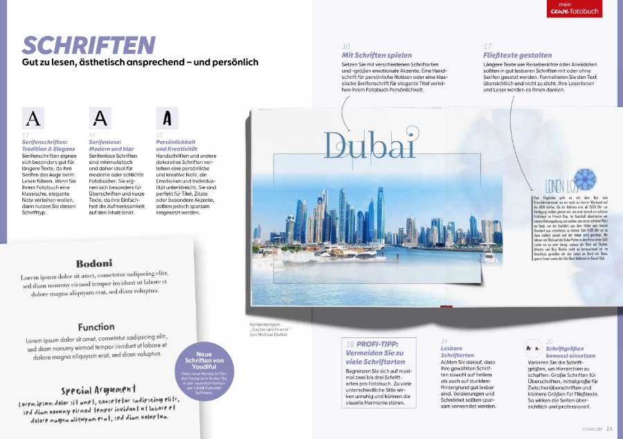 Re: Die CEWE Fotozeit 01/2025Ich finde in dieser Ausgabe besonders die Seiten 18-25 - 33 Tipps für ihr persönliches Fotobuch und 38-43 - Schriften - sehr gut und hilfreich.