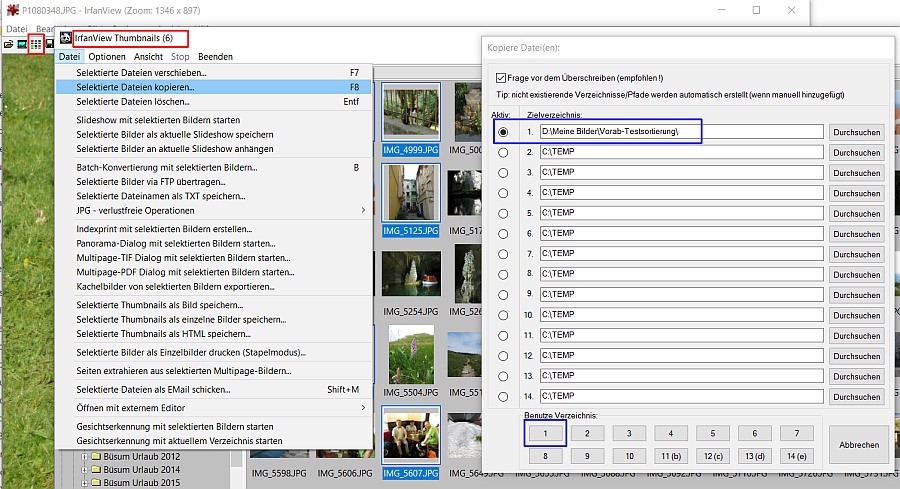 Re: Foto Visuell selektieren - Reihenfolge best. - SpeichernHallo Josefia, danke - wieder was gelernt - sowohl die Idee mit dem Vorschaufenster als auch das Umnummerieren in irfanview.