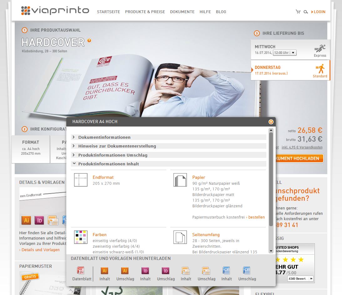 ich habe Ihnen Beitrag leider zu spät entdeckt, entschuldigen Sie bitte. Um die Frage abschließend zu beantworten, auch bei viaprinto lassen sich alle Formate genau einsehen. Klicken Sie dazu einfach auf "Details & Vorlagen" Sylke Re: Abmessungen:mrgreen: :mrgreen: