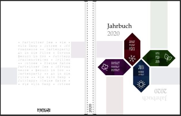 Mein erstes (vielleicht einziges) Jahrbuch, habe ich noch einmal überarbeitet und die etliche Seiten sind nun in der finalen Version fertiggestellt. Das Cover und die Kapitelöffner sind recht spartanisch gehalten. Für die einzelnen Ereignisse, Erlebnisse, habe ich dagegen eine abwechslungsreiche und farbenfrohe Gestaltung gewählt.