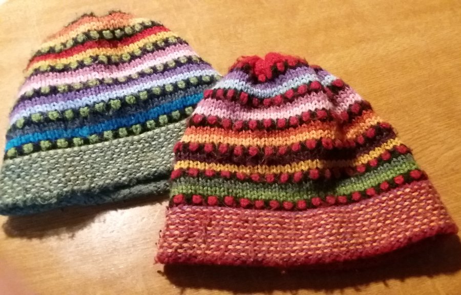 Re: Challenge 01/2021 • OrangenhautDiese zwei gestrickten Mützen habe ich vor Jahren in Bolivien gekauft. Sie begleiten mich das ganze Jahr. Gleiches Motiv in unterschiedlichen Farben