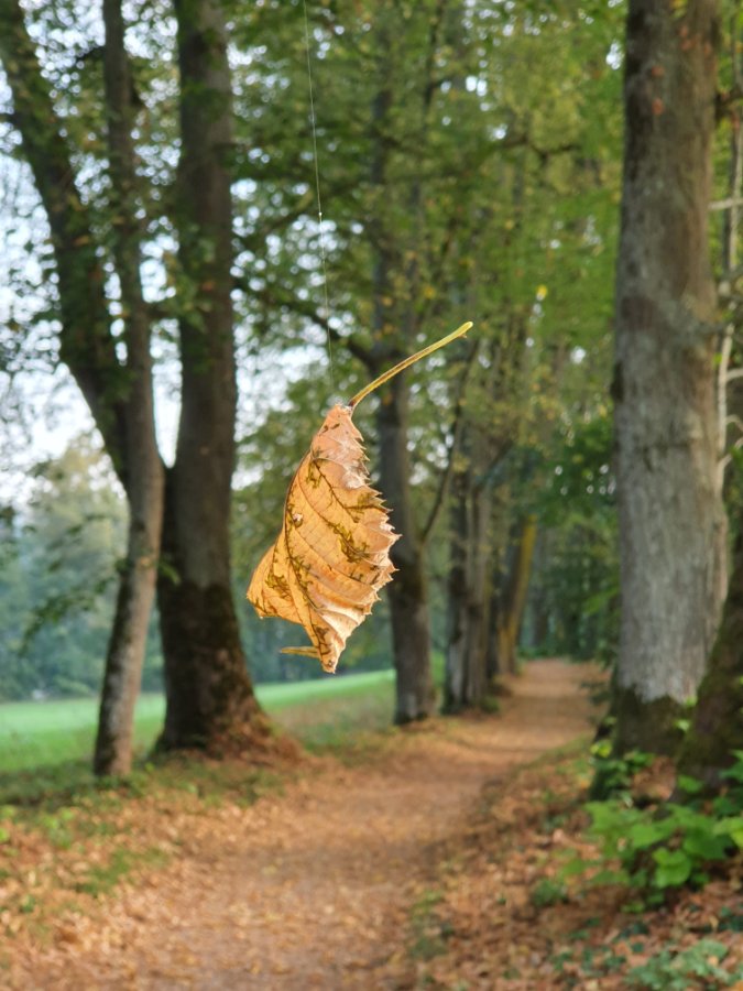 Es ist keine Fotomontage. Das Blatt hing mitten in der Allee an einem hauchdünnen Faden einer Spinne und tanzte im Wind. Mehrere Anläufe waren notwendig, bis das Foto im Kasten war Re: Challenge 09/2021 • Der Wind pustet!Wenn wir schon bei Spinnen sind : Dieses Netz habe ich vor drei Tagen in einer Kellergasse in Niederösterreich fotografiert.