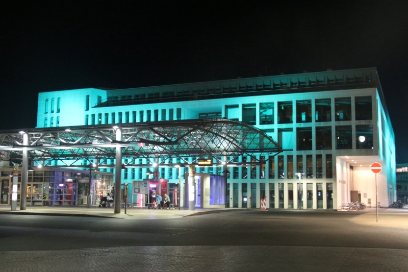 Re: Challenge 09/2016 • Jetzt wird's bunt!Ein Abfallprodukt von meinem Besuch der Photokina in Köln: Das Heinrich-von-Kleist-Forum am Bahnhof in Hamm(Westfalen), aufgenommen während eines 15minütigen Umsteigeaufenthalts. Wäre der Aufenthalt länger gewesen, hätte ich auch mehr Bilder gehabt - das Farbenspiel wechselt in regelmässigen Abständen
