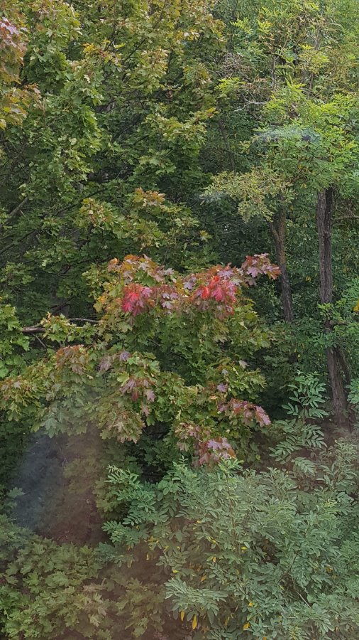 Re: Challenge 10/2021 • Ohne Rot ist alles unbunt!Diese Bäume stehen direkt vor meinem Küchenfenster.
