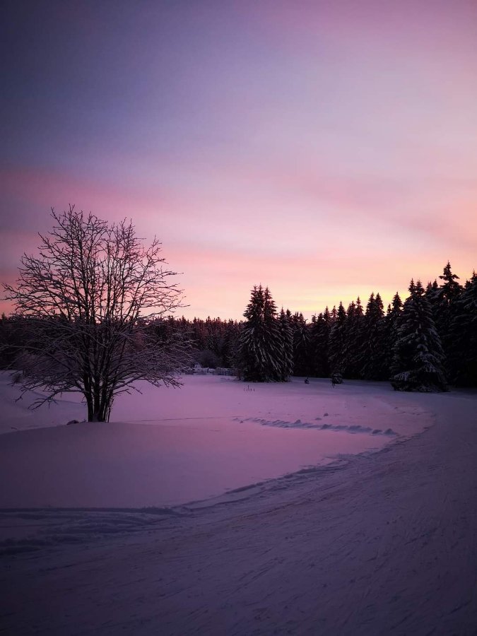 1/400 Sek. - F4 - ISO 100 - Canon Re: Challenge 02/2022 • SonnenuntergangNoch einmal ein Schneefoto, weil wir Winter haben und es so romantisch ist. LG inimu
