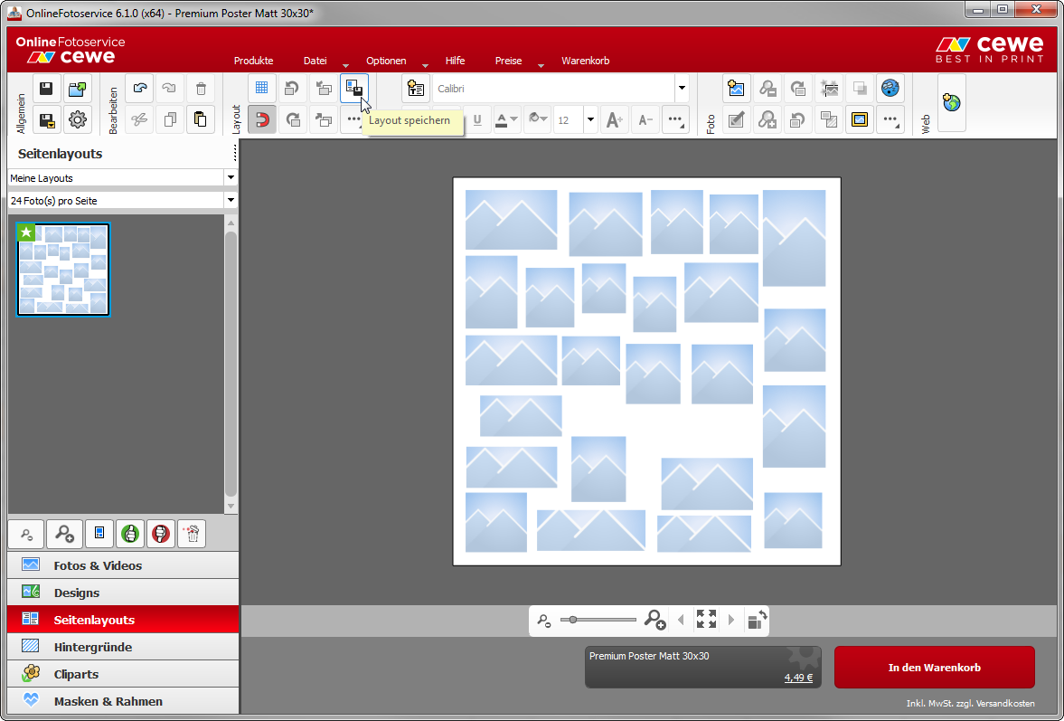 Auf diesem platzieren spontan Sie 24 Bilder in einer Wunschgröße.