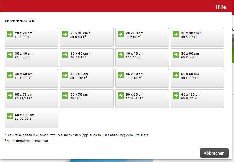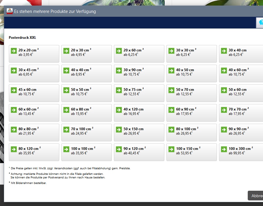 bei welchem Anbieter und aus welchem Land bestellst du denn? Vielleicht bietet dein Handeslpartner dieses Format nicht an. Bei dm z.B. gibt es wesentlich mehr Formate als auf deinem Screenshot angezeigt: @Fokussy: Tolle Idee, gefällt mir. liebe Grüße