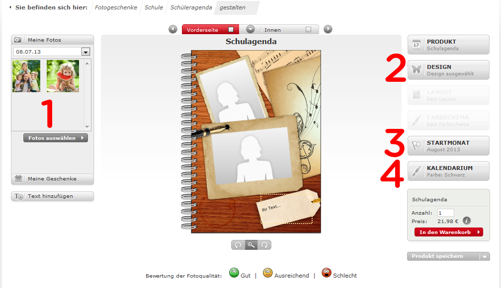 Die Schüleragenda finden Sie online im Bereich „Fotogeschenke“.