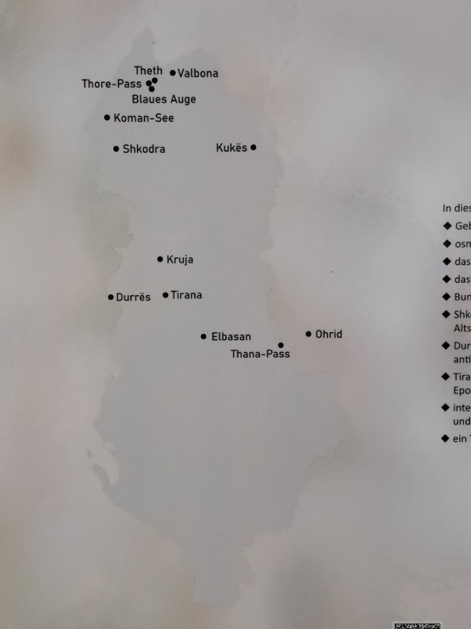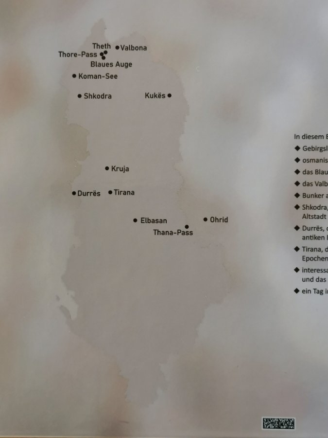 Nach einer kurzen Auszeit im Ausland nehme ich wieder meinen Versuch auf, zu einem korrekt gedruckten Albanienbuch (Band 1) zu kommen. Das Problem ist der rückwärtige Einband, auf dem die Landkarte schlecht zu erkennen ist. So soll es aussehen: