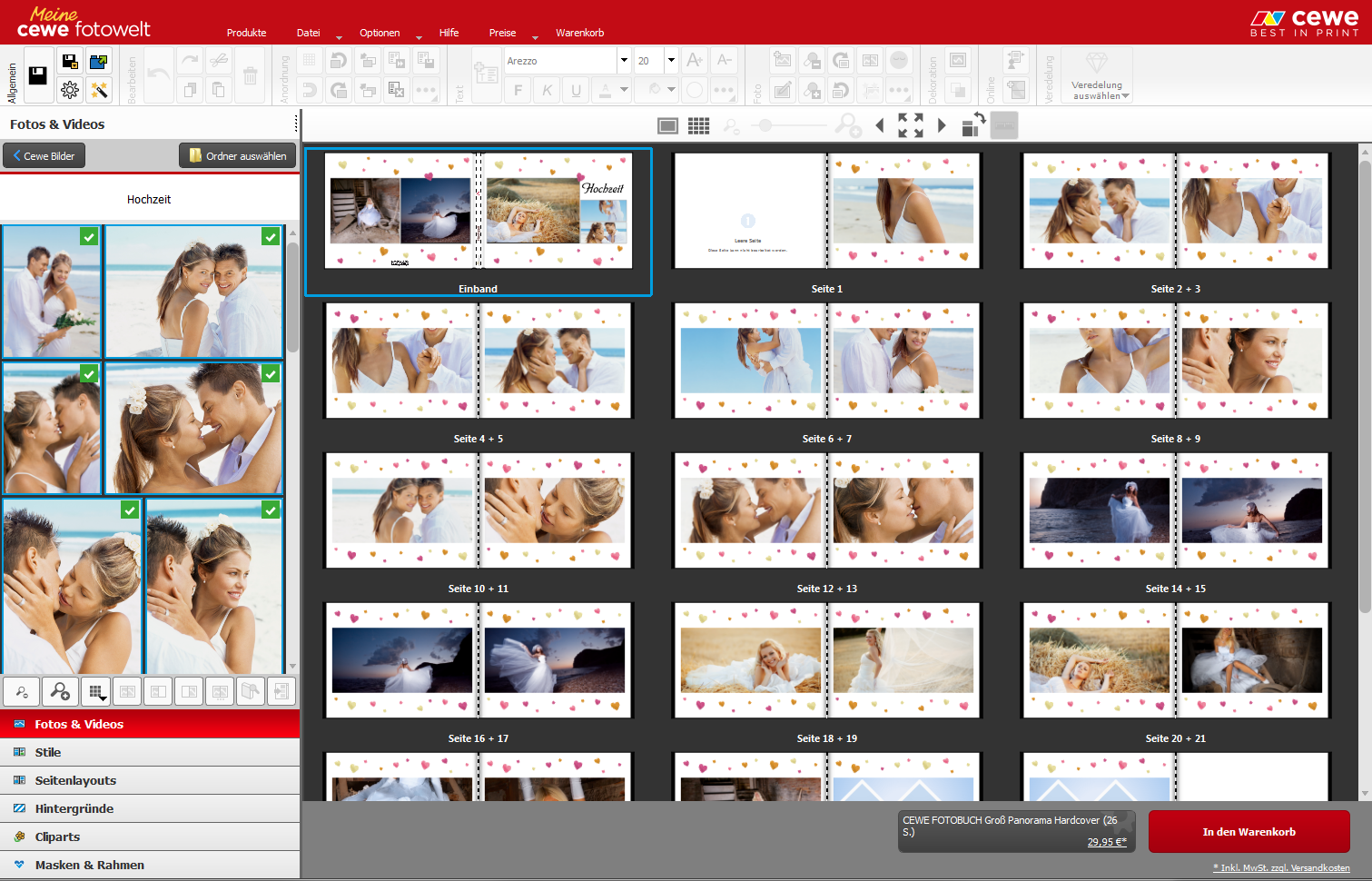 • Vergrößerte Darstellung aller CEWE FOTOBUCH Seiten