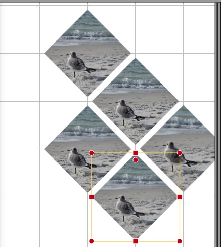 Re: Karo-LayoutIch glaube, ich würde die Fotos zuerst ganz normal waagerecht gestalten und an einem Raster ausrichten, anschließend alle markieren und dann erst drehen. Ich habe es selbst noch nicht ausprobiert