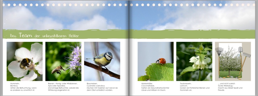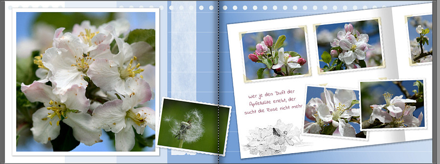 Hallo Martha,Mein Buch bzw fast alle meine Bücher sind ja im Hochformat, was man hier nicht so häufig sieht. ich habe noch nie ein Hochformat-Fotobuch gemacht. Zu Anfang habe ich nur Panorama-Format gestaltet, inzwischen bin ich bei quadratisch gelandet. Da gestalte ich aber auch meist im Querformat Meine "normalen" Fotobücher sind ziemlich schlicht. Ich mache aber immer mal wieder "Themenbücher", die eher lebhaft sind und auch meine Jahrbücher sind sehr bunt und eher dekorativ gestaltet. Trotzdem hat auch ein Jahrbuch einen roten Faden. Ich lege einen Satzspiegel fest und die Grund-Gestaltungselemente ziehen sich durch das gesamte Fotobuch. Ich hänge mal ein paar Screenshots an, von denen ich denke, dass die Gestaltungsideen auch im Hochformat umgesetzt werden können. Vielleicht findest du ja in meinem Anleitungsheftchen noch die eine oder andere spezielle Idee. Und hier gibt es die ganz bunte Variante. Vielleicht gibt es aber auch da die ein oder andere Anregung. Hier nun die Screenshots aus einem "Themenbuch". Ich habe für meinen Mann ein Fotobuch zu seinem Hobby, dem Obstbau, gemacht. Daraus habe ich ein paar Gestaltungen ausgesucht. Es ist zwar ein Panorama-Format, es geht ja aber mehr um die einzelnen Ideen. liebe Grüße