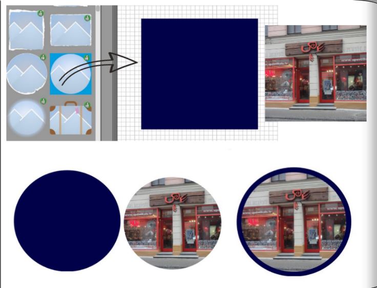 1.Yes, when I have 4 pictures I can find out now- with your help. But when there is only one (1) picture?? How do I find the center of the picture? And another thing: I have tried to find the post you have found - how did you do that? Make the clipart square and the edge half the size of the picture's edge If your picture has 10 cm, make it 5. Then place the cliparts with the magnetic helplines like in the other post. If you want the cliparts/lines bigger, select them, and enlarge them symmetrically with holding strg and alt . For this you have to deactivate the magnetic helplines. 2. I searched for posts of Lis Viggers liebe Grüße
