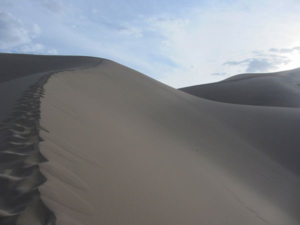 Hier z.B. ein sehr vergänglicher Pfad in der Wüste Gobi.