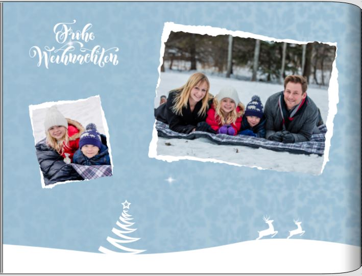 Für diese CEWE FOTOBUCH Seite habe ich verschiedene winterliche Gestaltungselemente für ein festliches Design kombiniert.