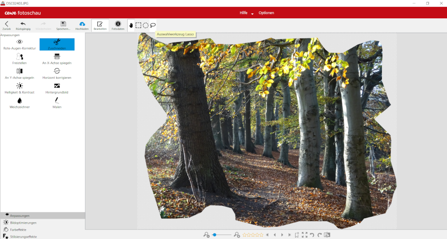 Du nimmst das Bild, welches schräge Kanten und Ecken haben soll in den Bearbeiten-Modus der Fotoschau.