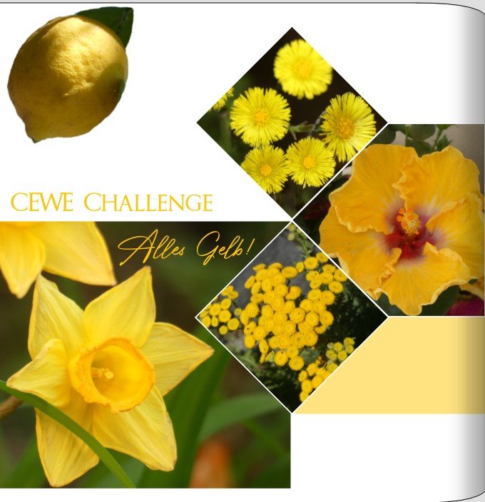 ich habe auf die Schnelle probiert, das Cover nachzubauen. Für die Fotos rechts habe ich nicht die Maske Raute verwendet, sondern die Eckenfunktion, dann die Fotos ohne Zwischenraum aneinander gefügt und mit einem weissen Farbrand, 0,5mm, mittig, versehen. Die gelbe Fläche rechts ist ein Farben-Clipart, das hinter dem Bild angeordnet ist, das linke Bild mit der Osterglocke auch. Das ist das Ergebnis: Viele Grüsse