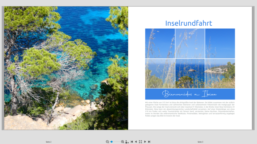 Mir gefällt Kunigundes Vorschlag auch sehr gut. Die beiden unterschiedlichen, aber farblich zur linken Seite harmonierenden, Bilder rechts wecken die Neugier auf die weitere Reise. Deine Formentera-Seite ist mir ebenfalls zu eintönig. Sehr schön finde ich das Layout - links das Bild ganzseitig, rechts mehrere kleine Bilder mit viel Weißraum drum rum. Deine Formentera-Seite ist mir ebenfalls zu eintönig.
