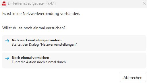 es kann natürlich sein, dass die Firewall abblockt oder ein Netzwerkproblem besteht. Probiere bitte noch aus, die Proxyeinstellungen in unserer Software anzupassen. Klicke aufs Zahnrädchen > Netzwerk > unter "Proxy Einstellungen" bitte "keinen Proxy nutzen" wählen. Zudem versuche bitte einmal, unsere Software in der Firewall oder dem Antivirenprogramm klar als Ausnahme zu definieren. Helfen auch diese Vorgehensweisen immer noch nicht, lass uns bitte einmal einen Screenshot der Fehlermeldung zukommen. Viele Grüße, Pauli Re: Anmeldung / Bestellung nicht möglichHallo,