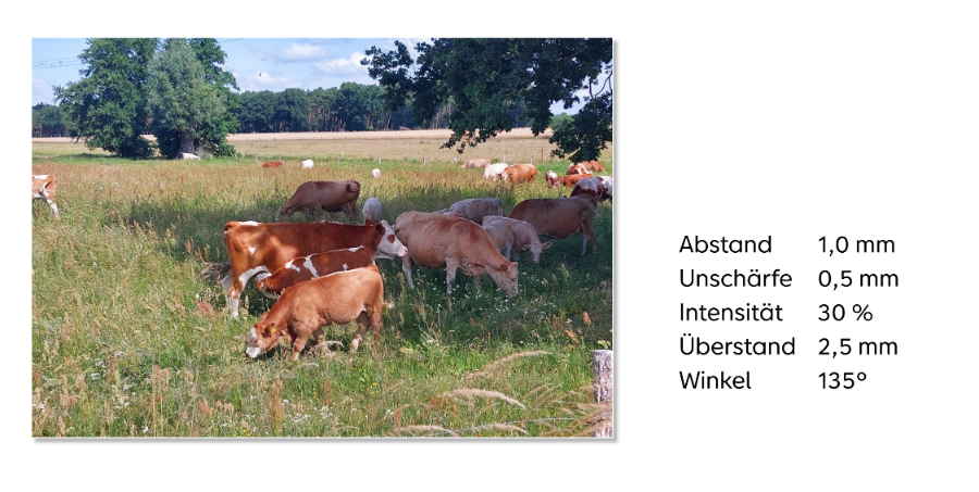 hier die Werte: 1,0 / 0,2 / 30 / 0,4 / 176 ° Es verwundert mich, dass man es anscheinend nicht richtig lesen kann. Bei meinem Screenshot läßt es sich prima ablesen. Auf jeden Fall hat mir deine Antwort, alle Schatten einheitlich schon mal geholfen. Die um die Polaroids werde ich somit einheitlich machen. Bei den normalen Fotos habe ich gerne mal einen etwas härteren oder auch weicheren Schatten, je nach Bildserie, genommen. Allerdings nicht auf komplett allen Seiten im Buch. Viele Grüße CSSky