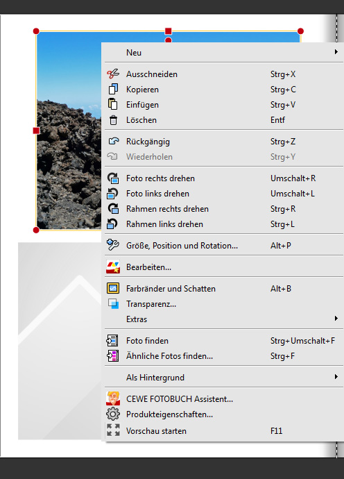Bei neuen Fotos auf leeren Seiten dürfte es überhaupt kein Problem geben, man muss sich nur daran gewöhnen, erst das Bild zu markieren und dann das Menü zu öffnen. Liebe Grüße