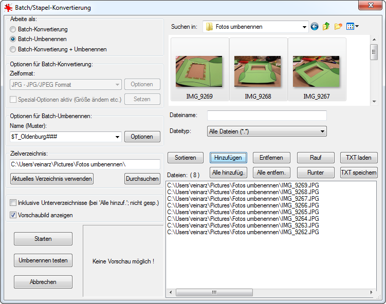 5. Wenn Sie Ihre Einstellungen mit "Umbenennen" bestätigen, werden Ihre Bilder umbenannt.
