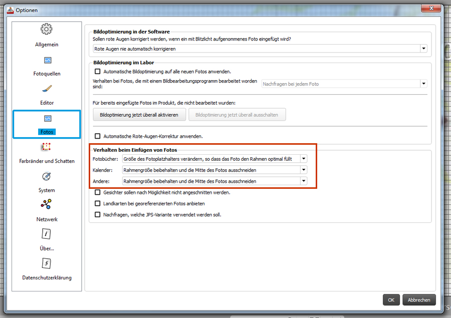 Du kannst das Verhalten der Fotos zu den Rahmen in den Optionen einstellen wie in den Anhängen zu sehen: Liebe Grüße