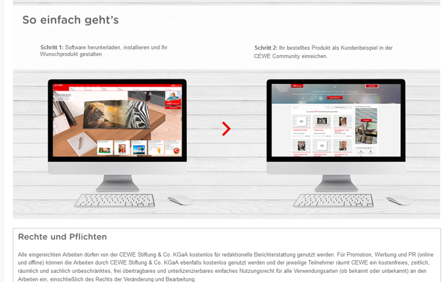 Lese gerade bei den Teilnahmebedingungen: Für die Online Veröffentlichung innerhalb der CEWE Community erhält der Nutzer einen 10€ Warengutschein. Ein weitergehender Honoraranspruch besteht nicht. Aber auf der Startseite steht: Jetzt Ihr Kundenbeispiel einreichen und CEWE Gutscheine im Warenwert von bis zu 160 € erhalten. Ich finde dies sehr irreführend und sollte vielleicht besser beschrieben werden. Wegen einem € 10.- Gutschein würde ich kein Fotobuch veröffentlichen, außer ich möchte, daß es meine Freunde sehen können. Die Auflösung ist ganz toll und man kann sein eigenes Buch auch wieder löschen, das sehe ich wieder als Vorteil Ich habe mich registriert und da ich mir diese unzähligen Passwörter nicht merke, habe ich einen Haken bei "eingeloggt bleiben" gesetzt. Also das "Rauchende Colts" Buch mit einem Favoriten Herzchen versehen und wollte dies bei einem anderen Buch auch tun, aber da mußte ich mich nochmals anmelden. Das finde ich schon mühsam, aber vielleicht wird ja noch an der Seite gearbeitet. Zuerst dachte ich, daß ich dann meine Favoriten filtern kann, leider ist dem nicht so. Das Herz ist einfach anstatt des Sternes. --------------------------------------------------- Re: Fotobuch von Freunden einsehen lassenRotuma hat geschrieben: Die "rauchende colts" konnte ich allerdings nicht aufrufen, ansonsten ist die Darstellung super!