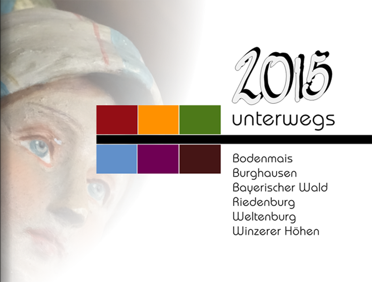 Seit einigen Jahren gestalte ich Jahrbücher zu unseren Kurzurlauben, Ausflügen etc., die alle den Titel unterwegs 20xx haben. Die Ereignisse sollten sich durch kräftige Farben voneinander unterscheiden. Duch Pittys Ausführungen über Linien in ihrem TG angeregt, kam mir die Idee, den Einband in Anlehnung an Mondrian zu gestalten. Die Farben finden sich im gesamten Buch und auf der ersten Seite, die den Titel wiederholt und genauere Angaben zu den besuchten Orten macht. Als Frontispiz (ich hoffe, ich habe es richtig verstanden, dass es sich hierbei um ein Foto auf der ersten Seite handelt) habe ich die Dame gewählt, weil sie so neugierig schaut, wo wir denn heuer unterwegs waren. Ich zeige euch gleich noch die letzte Seite, die ähnlich wie die erste gestaltet ist, nur mit einem Ausblick auf das kommende Jahr. Da ich mein Buch erst bestellen werde, würde ich mich über Kommentare/Kritik/Verbesserungsvorschläge freuen. Liebe Grüße und allen hier im Forum ein glückliches Jahr 2016 Yorck Liebe Grüße