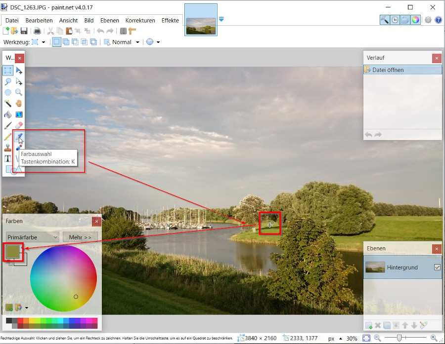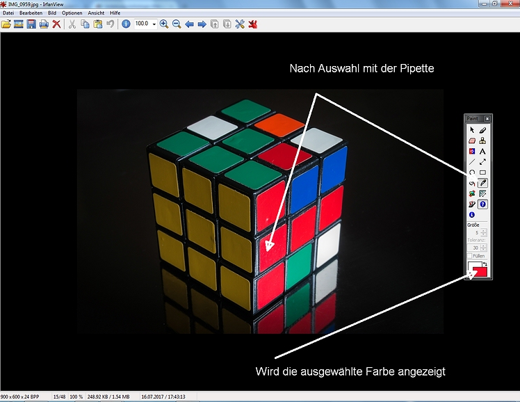 Diesen Beitrag hab ich auch gefunden. Leider habe ich kein Word sondern nur Open Office. Trotzdem vielen Dank Hallo @PeFoto auch Dir vielen lieben Dank für die anschaulichen Erklärungen. Leider habe ich kein Irfanview, und ich kann selber nix runterladen bzw trau mich nicht Hallo @Oldnat Auch Dir vielen Dank für die Erklärung mit Foto Kann man bei Paint Net evtl. auch die Farbe von einem Foto per Pipette abnehmen? Am besten so einfach wie mit dem CEWE Programm D:mrgreen: Ansonsten hätte ich noch Picasa installiert. Vielleicht gäbe es ja dort eine einfache Möglichkeit die Farbe direkt vom Foto zu bestimmen. Falls ja, wäre auch hier eine detaillierte Anleitung super VG geniesser66