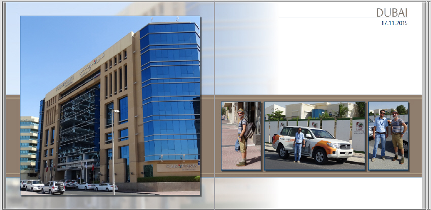 Ich persönlich finde die Schrift aber zu groß, wenn es tatsächlich auf jeder Seite erscheint. Außerdem hat man irgendwann ja mal kapiert, dass man jetzt in Dubai ist. Deshalb wäre es evtl. eine Idee, lieber hinzuschreiben, welches Gebäude, Stadtteil etc. das ist. Nur meine Gedanken dazu ... Viel Spaß weiterhin beim Gestalten. Gruß DSL-schnell