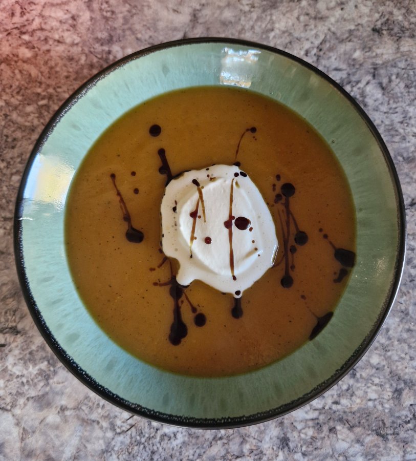 Ich habe mir mehrere Rezepte aus deinem Buch gespeichert, und heute das erste ausprobiert: die fruchtige Kürbis-Mango-Suppe.