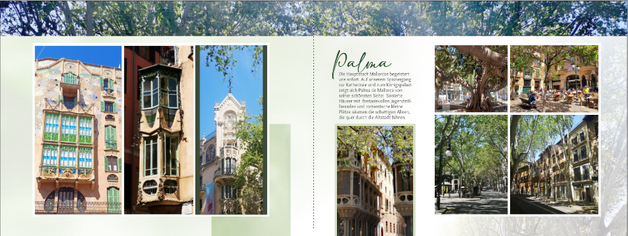 mein Buch über meinen Mallorca Urlaub im Frühjahr ist fast fertig. Nur eine Seite will mir nicht gelingen, ich habe keine Ideen mehr. Ich poste mal die Seiten, die ich über Palma habe. Irgendwie harmoniert die Seite mit der Kathedrale (3.Bild) nicht mit den anderen? Oder doch? Die Seite ist schon ein bisschen langweilig? Was meint ihr? Kommentare/Kritik zu allen Seiten sind stets willkommen. Liebe Grüße