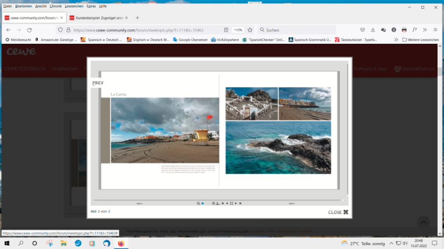 ich denke, jetzt hab ich's verstanden. Leider stelle ich meine Bücher nicht offziell zur Verfügung. Meine Bücher sind von meinen Gruppen-Urlaubsreisen. Das heißt, ich veröffentlich diese nicht, da auch immer Gruppenteilnehmer auf den Bildern zu sehen sind. Ich lasse mir den link zwar von CEWE geben, dies aber nur, damit sich die Gruppenteilnehmer mein Werk ansehen können. Bisher hatte ich mich hier oft an "Designpiraten" ausgetobt und habe dann Screenshots erstellt und hier reingestellt. Noch nicht so viele, ... bin ja noch nicht lange dabei. Und jetzt wo Silke weg ist, naja. Ist schade, das war eine tolle Sache. Aber ich lerne hier trotzdem noch viel. Auch Traumfänger danke für deine Hilfe (nicht nur in diesem Beitrag). Wünsche euch und allen CEWEanern schönes Pfingswochenende Eure Lucia PS: Ich bleibe dabei und lerne fleißig weiter