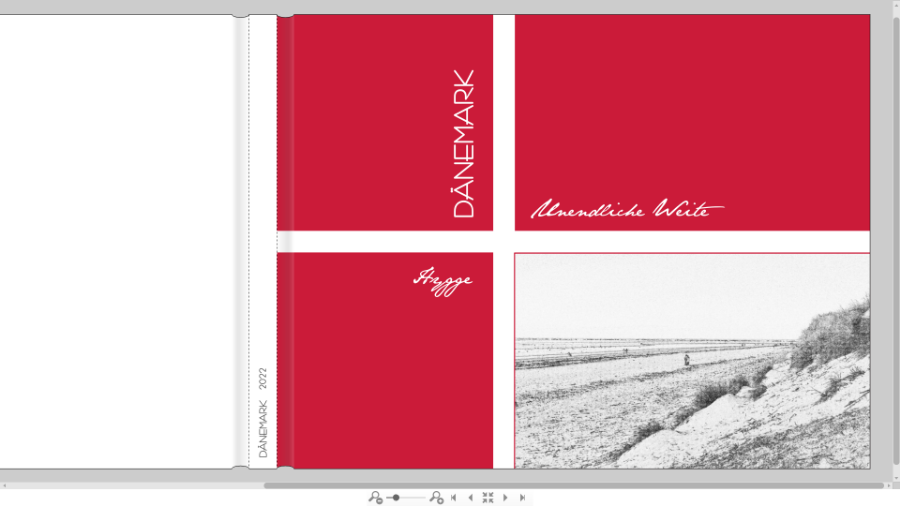Ich stimme spica in allen Punkten zu. Was mich persönlich an dem Ganzen noch stört, ist die vertikale Ausrichtung des Wortes Dänemark. Ich würde das waagrecht schreiben, anstelle von "Unendliche Weite" und diese Worte unter "Hygge" setzen, beides rechtsbündig. Das hätte auch den Vorteil, dass das rote Viereck schräg gegenüber des Bildes frei von einer Schrift wäre und so vielleicht als Gegenpol das Foto besser wirken kann.