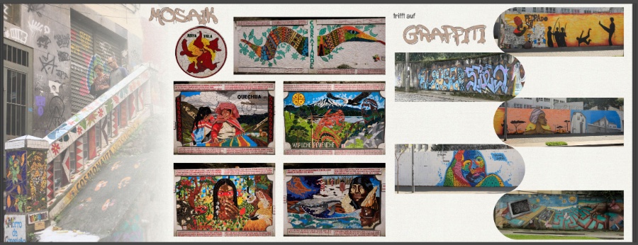 Bei der Mosaik-Seite würde ich ebenfalls alle Textflächen wegzoomen, sodass nur die Bildmotive zur Geltung kommen. Teilweise sind die Texte ohnehin angeschnitten, sodass ich sie für entbehrlich halte. Transparenzen und Verläufe würde ich entfernen sowie den oberen 4 kleinen Bildern einen dezenten Rahmen geben, damit sie sich von dem großen Motiv darunter abheben. Auf das rechte untere Mosaik würde ich im Buch gänzlich verzichten, da es eh´ irgendwie übriggeblieben auf der Seite wirkt. Die Farbe/sw-Kombi bei der Treppe finde ich toll! Das würde ich unbedingt lassen. Für beide Seiten: Weniger Schrift verwenden. je 1x "Mosaik" und "Graffiti" reicht. Ich würde mich hier für die dickere, gelbe Schrift entscheiden. Die Graffiti-Seite: Da würde ich persönlich wohl nochmals 2 daraus machen oder ausdünnen. Wahrscheinlich eher letzteres. Mir gefallen Wildkatze, Trump-Mauer und die beiden schräg angeschnittenen Bilder am besten. Mit diesen 4 würde ich die Gestaltung hier nochmals neu angehen und die anderen Bilder weglassen. Und auch hier wieder Transparenzen, Verläufe und schräge Ecken weglassen. Graffiti und Mosaike leben vor allem von den Farben. Warum also diese wegnehmen? Liebe Grüße