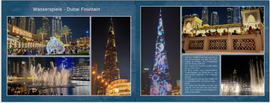 Das 1.Beispiel war auch mein Favorit, da die Farbe auch gut im rechten Foto sichtbar ist. Den freigestellten Turm werde ich noch minimal verkleinern. Wenn der weiße Rand 1mm mit Abstand 1mm so passt ändere ich die Seite von Dubai Fontains entsprechend ab. Was meint Ihr? Liebe Grüße Asiafan