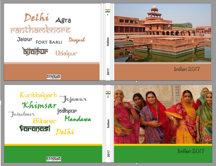 Die Aufteilung auf Deinem Buchrücken finde ich etwas unausgewogen durch Flagge und Jahreszahl unten und dann nur das kurze Wort "Indien". Möchtest DFu nicht evtl. die Jahreszahl unten und die Flageg oben (bzw. umgekehrt) sowie Indien mittig anbringen? Oder wie wäre es mit einem Text "unsere Reise nach Indien" bzw. einen anderen etwas "schlagkräftigeren" Titel? Habe Dir den Buchrücken meines letzten Buches angehängt.