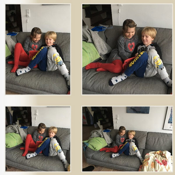 I just know too well how difficult it is to choose.... If I have a series of more or less the same scene, I always choose the photo that shows a) typical or funny mimics (face!!) or a typical or funny posture of the body. The others are then sadly "forgotten"... But sometimes I choose op to 3 (not more!) pictures of the same scene, but then the faces / figures must all have the same size, so mybe I must enlarge them with the + button and I place them all in one line, either vertical or better horizontal. The pictures Rotuma spoke about: if you had enlarged the faces of all four pictures up to the size of the one top right, it would have had a better effect. But I agree with Rotuma, just take the one top left (nicer face of the girl), make it a real good sized one an place it in the middle. It gives you all the details of the two children, noo real need to add more pictures. same goes with the boy : I would have chosen top left, top right and bottom centre, but again enlarged top left and bottom centre to the same face-size of top right. And place them in a horizontal line in the middle of the page. I hope you understand what I mean and don't hesitate to ask again! Greetings to Aarhus! (not far from my bithplace) old girl nur wer fragt, kann etwas lernen