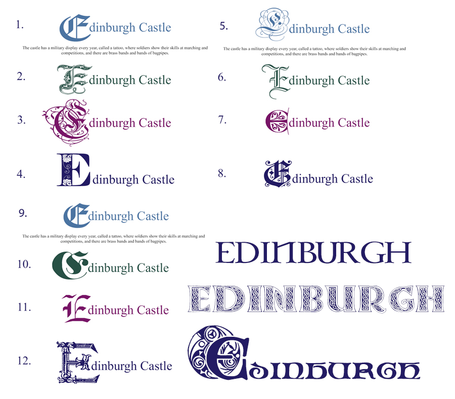 Die nächste Verwirrung Re: Font für ÜberschriftMir gefällt spontan die Nr. 8. Der Anfangsbuchstabe von Edinburgh neben der Nr. 12 gefällt mir auch gut.