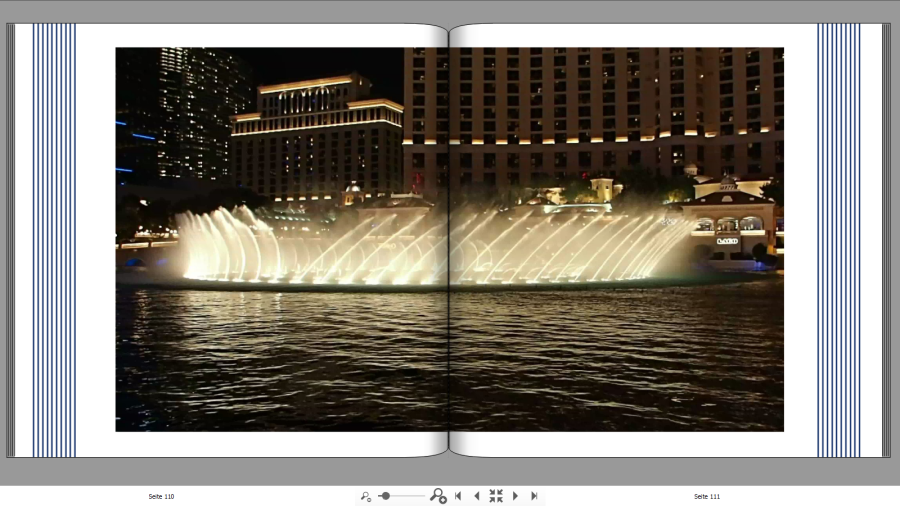 Liegt dir sehr viel an diesem Foto? Wenn nicht, würde ich es ganz weglassen. Der Brunnen ist mittig, da würde ich zumindest unten was wegschneiden. Wurde es aus einem 4k Video ausgeschnitten? Wenn nicht, wird es vielleicht doch etwas zu pixelig, was bei schwarz mehr auffällt als bei einer Landschaft.--------------------------------------------------- Re: Kreative BlockadeDem Vorschlag von Rotuma schließe ich mich an, außerdem würde ich dem Foto keinen weißen, sondern einen goldfarbenen Rahmen geben, den du mit dem Farbpicker aus einem Farbton des Fotos einfärben kannst. Schau dir auch nochmal genau deine erste Innenseite an. Die Abstände der Fotos scheinen nicht korrekt ausgerichtet zu sein. Es kommt mir auch vor, als wären die in der linken Spalte angeordneten Fotos in der Breite etwas schmaler als die rechten. Das kannst du ganz einfach mit dem Hilfsgitter überprüfen und korrigieren. Ansonsten gefällt mir die erste Seite sehr gut. Das Cover wäre mir persönlich zu voll, ist aber Geschmacksache. Die Schräge im Hintergrund gefällt mir sehr gut!