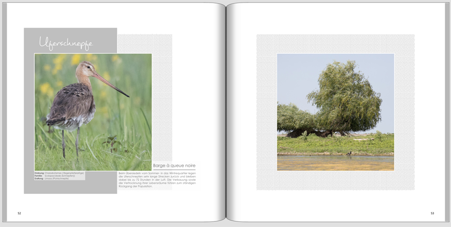 vielen, vielen Dank für eure Kommentare! Ich habe mal alles "aufgesaugt"; hier meine ersten Gedanken dazu: Ich habe überhaupt nicht damit gerechnet, dass alt eher mehr Anklang findet als neu. Bei mir war der Gedanke "wenn ich es schon überarbeite, dann soll es auch ein anderes Layout werden" und dieser Gedanke verstellt mir vielleicht ein bisschen die Sicht. Jedenfalls danke für die Hinweise auf die "Gestaltung als Selbstzweck" ("l'art pour l'art"). Dieses Feedback habe ich gelegentlich auch schon früher bekommen, aber ich kann es nicht lassen. Ein paar "Verzierungen" werden bei der weiteren Überarbeitung aber sicher auf der Strecke bleiben. Das Netz als Rahmen durch eine einfärbige, helle Fläche ersetzen? Da stimme ich rational sofort zu - emotional bin ich dem Netz wegen der Stunden, die ich mit dem Herstellen verbracht habe, noch zu sehr verbunden. Mal sehen, wie es in ein paar Wochen ausschaut. Die Rauten werden es wahrscheinlich nicht in die finale Version schaffen. Zudem ist es ja wirklich so, dass gegenständliche Motive nicht in Rauten passt. Bilder passen farblich, strukturell nicht zusammen: An dem kiefle ich schon seit einiger Zeit. Die Uferschnepfe ist da eh noch von der besseren Sorte. Je weniger Bilder pro Seite, ums so wichtiger ist die Stimmigkeit der Bilder; Leider habe ich in meinem Fundus nicht so viel Passendes vorrätig. Wahrscheinlich ist es dann besser zu kürzen. Ist es ein Reisebericht oder eine Fotosammlung: Es war mal ein Reisebericht. Das berichtartige schleicht sich grad durch die Hintertüre raus. Vielleicht kürze ich den Inhalt noch weiter und mache einen Bildband als Ergänzung (und nicht als Ersatz) zum bestehenden Buch. Die Fotos mit Personen kommen dann auch raus und ich könnte es somit auch als Kundenbuch veröffentlichen. Ich mach mich jetzt einmal an die "Weihnachtspflichten" und dann schaue ich noch einmal - mit Abstand - was ich mit der neuen Version endgültig mache. Jedenfalls noch einmal vielen Dank für all eure Gedanken! Das hat mir wirklich sehr geholfen - mehr als ich erhofft habe! Danke - danke - danke. Ich melde mich wieder, wenn ich weitermache. Re: Überarbeitung eines Fotobuchsgrasmuecke hat geschrieben: ....mache einen Bildband als Ergänzung (und nicht als Ersatz) zum bestehenden Buch... Exzellente Idee! Genau das sollst du machen! LG Old Nat, der Dino